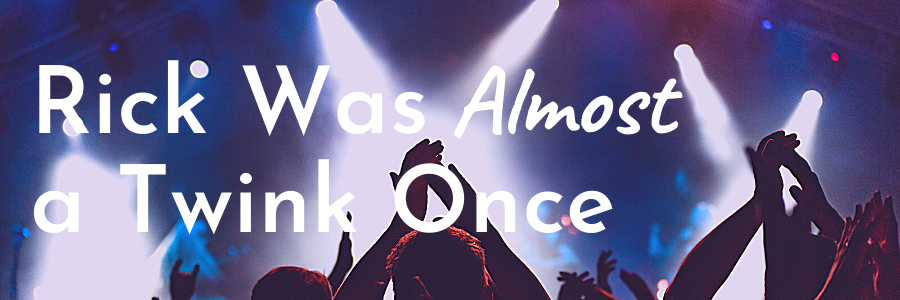 Music: Rick Was Almost a Twink Once More music to get you on your feet. Tunes from when I was out with friends dancing in the clubs in the 90s. I wonder if Club Park Avenue in Tallahassee is still around, or the Hung Jury in DC. Skip back to main navigation